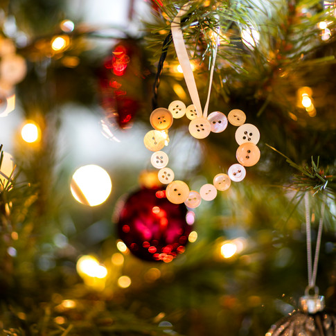 I've made a few Christmas decorations from old odd buttons, made garlands and wreaths to dress the doors and stairs and added a few extra candles to create the traditional Christmas feel.